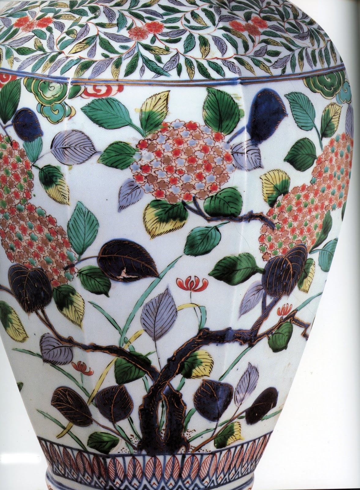 | 色絵紫陽花牡丹文八角壺 伊万里焼 江戸時代 18世紀 |